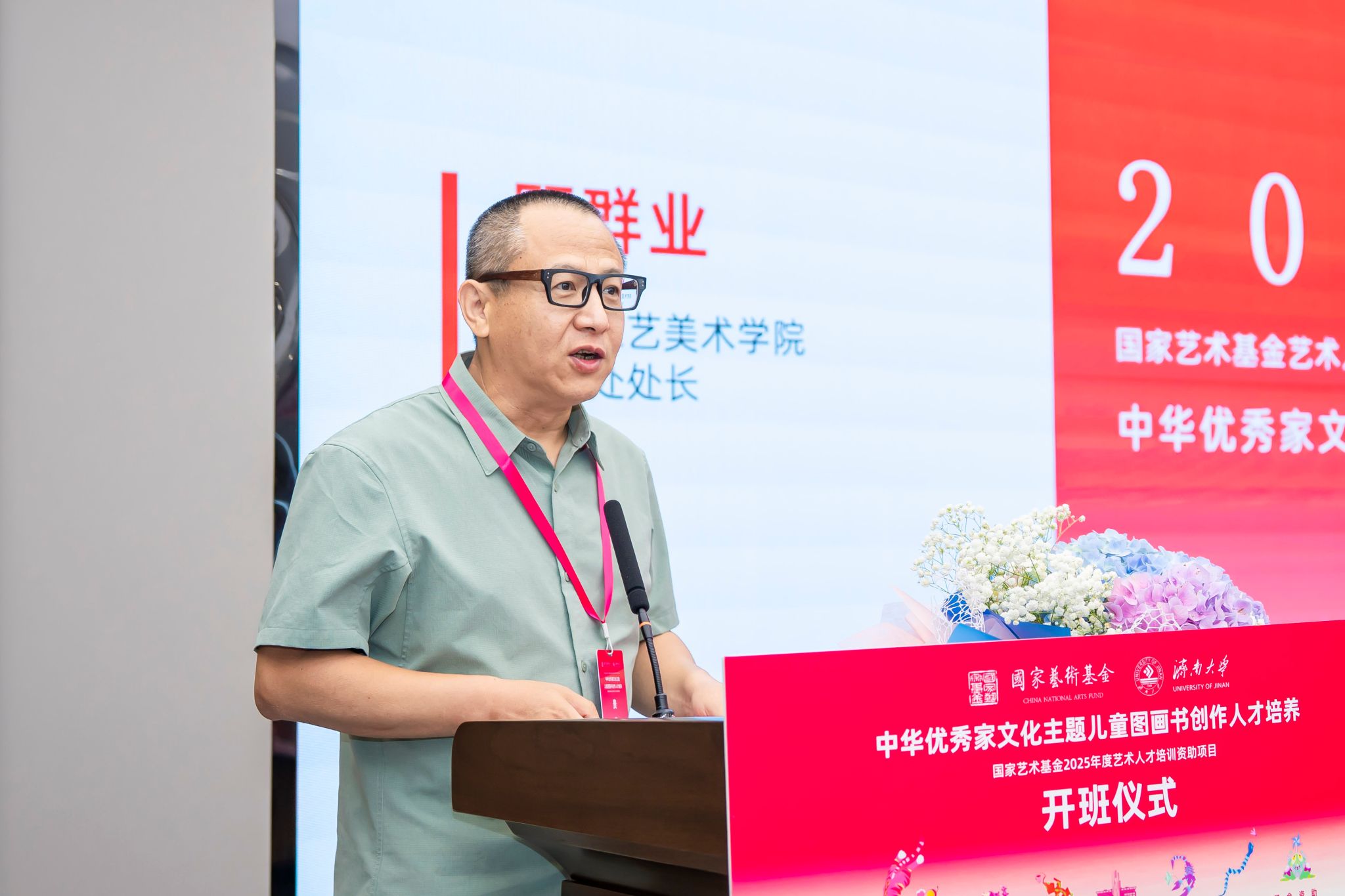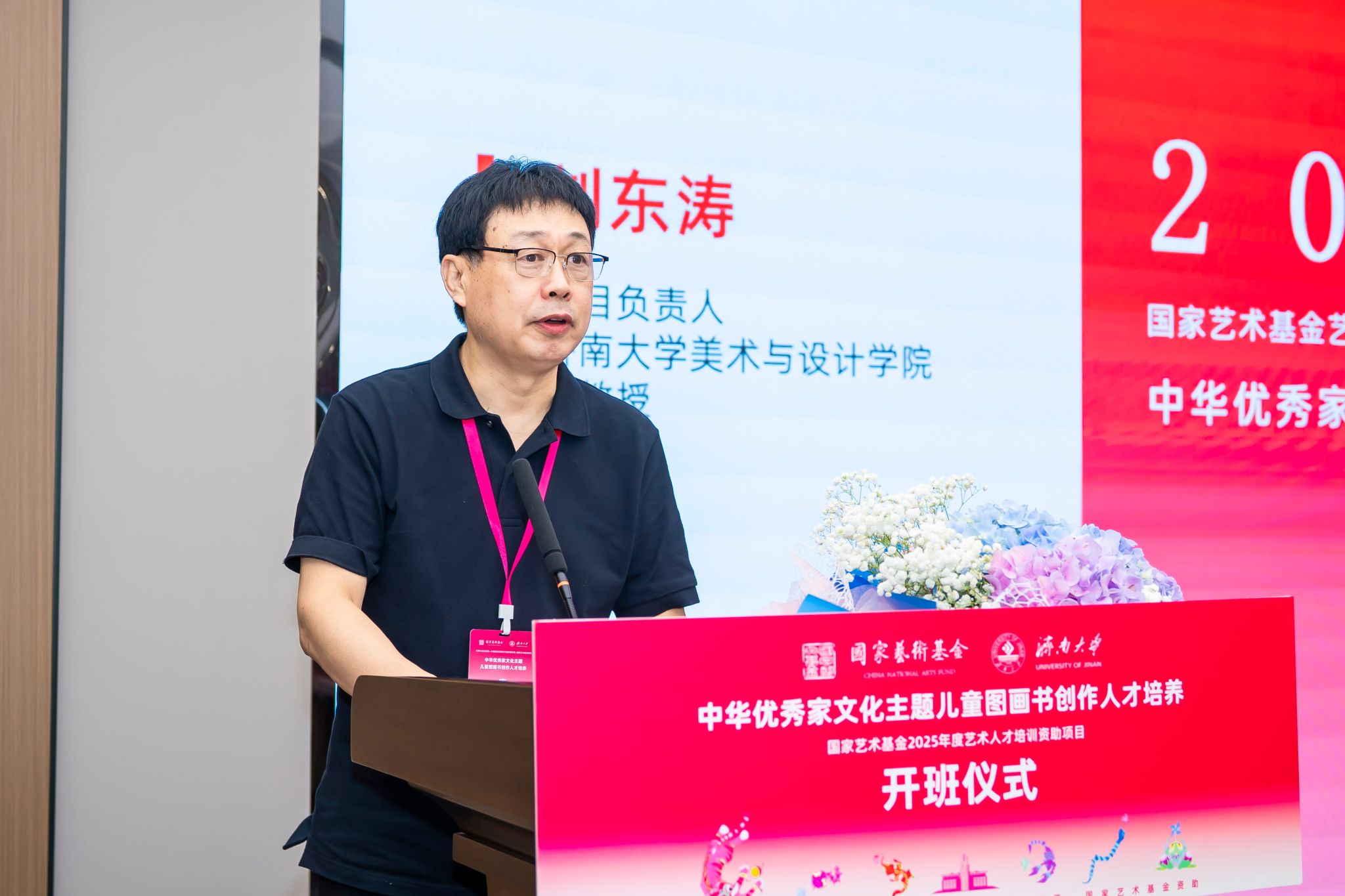 的办学历史和建设成就,他强调,本次项目实现了我校在该设计类人才培训项目上的零的突破,也是山东在艺术教育领域的一次重要突破。他希望全体学员以本次培训为起点,深入理解中华优秀家文化的思想精髓及其现代化创新转化,运用新的绘画手法赋能家文化表达,创作出主题精深、画面精湛、制作精良的儿童图画书佳作,为延续中华文脉促进新生代的文化复兴贡献力量。