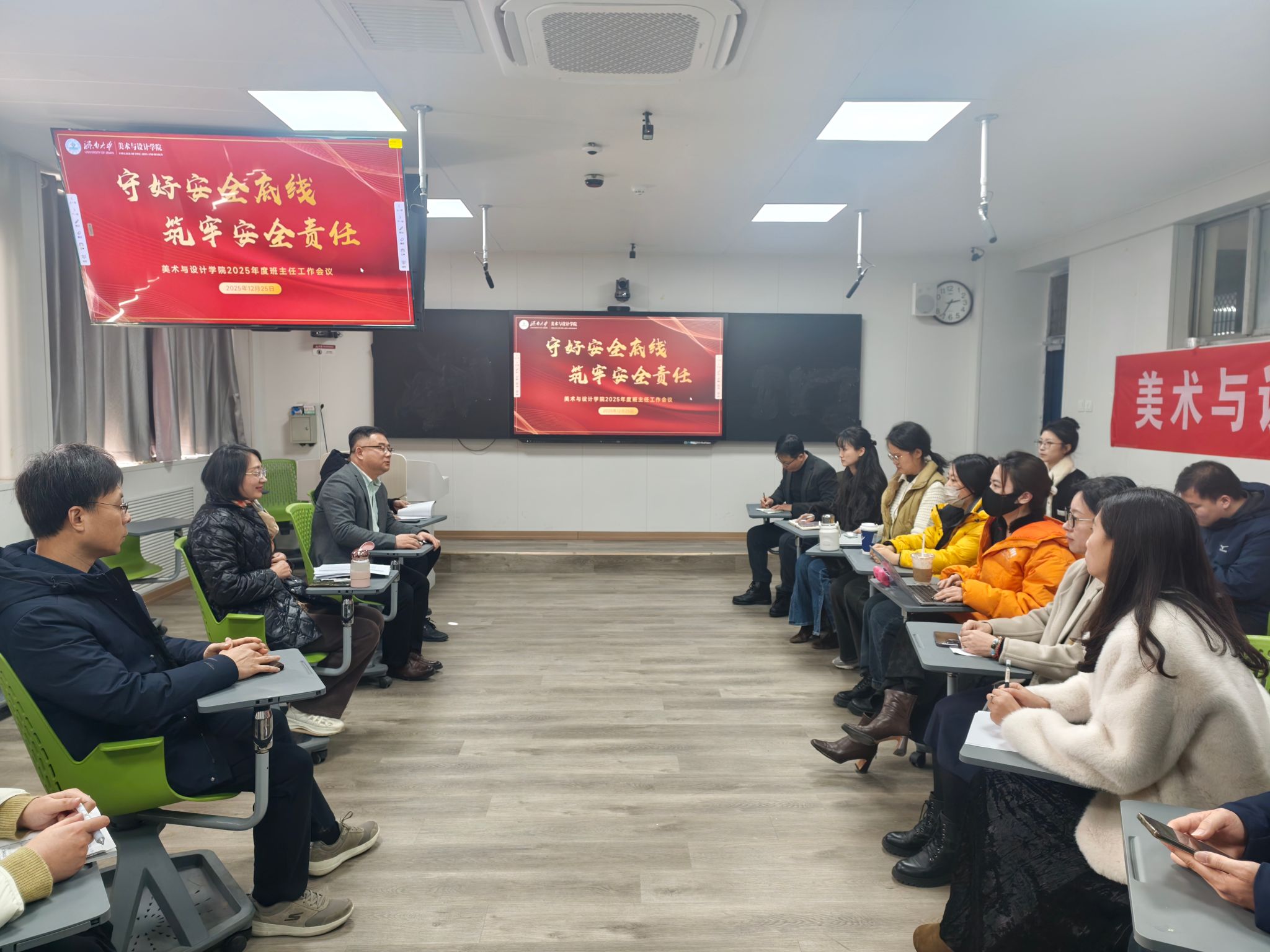 在第4教学楼304教室召开“守牢安全底线 筑牢安全责任”2025年度班主任工作会议。学院党委书记陈春锋、副院长赵忠超及班主任代表参加会议。会议由学院党委副书记、副院长何贵亮主持。