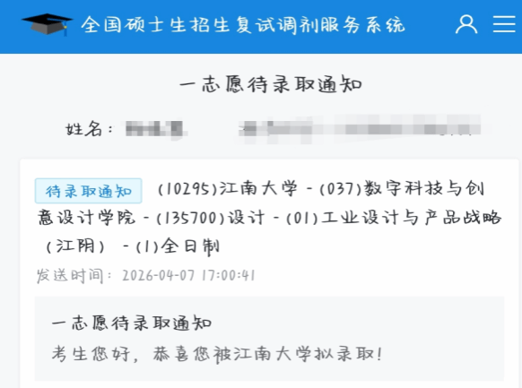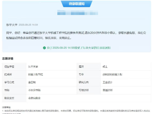 近日,2026年全国硕士研究生招生录取工作捷报传来,学院工业设计专业2022级学生升学成绩实现显著提升。该专业共57名学生,最终成功升学23人,专业升学率突破40%,较以往取得长足进步。其中,11人被武汉大学、北京航空航天大学、东北大学等国家“双一流”建设高校录取,占该专业总升学人数近半数。这一成绩的取得,既是同学们勤学笃行、奋力拼搏的结果,更是学院坚持立德树人根本任务、持续深化学风建设、不断提升人才培养质量的生动体现。