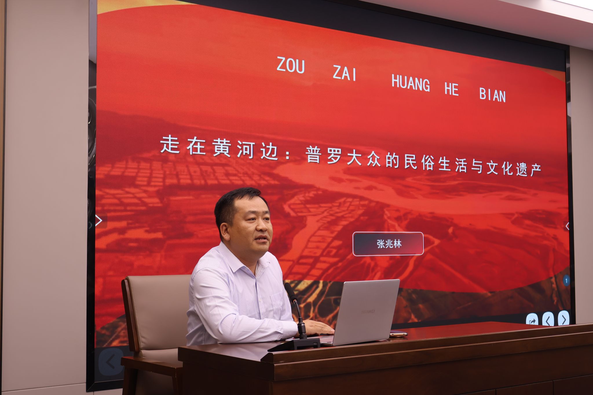 讲座中,张兆林以黄河流域民俗生活与文化遗产为切入点,从“文化勾陈”“民间俗信”“续写华章”等方面展开系统讲解。他结合长期田野调查积累的丰富案例,引导师生从普通民众的日常生活、审美创造和精神世界中理解黄河文化的深厚底蕴,阐释民俗文化遗产在历史延续、社会发展和文化认同中的独特价值。张兆林指出,黄河文化不仅存在于宏大的历史叙事中,也深植于民间器物、手工技艺、生活习俗和乡土记忆之中。民间艺术不是静止的文化标本,而是在生产生活中不断生成、传承和转化的活态文化。