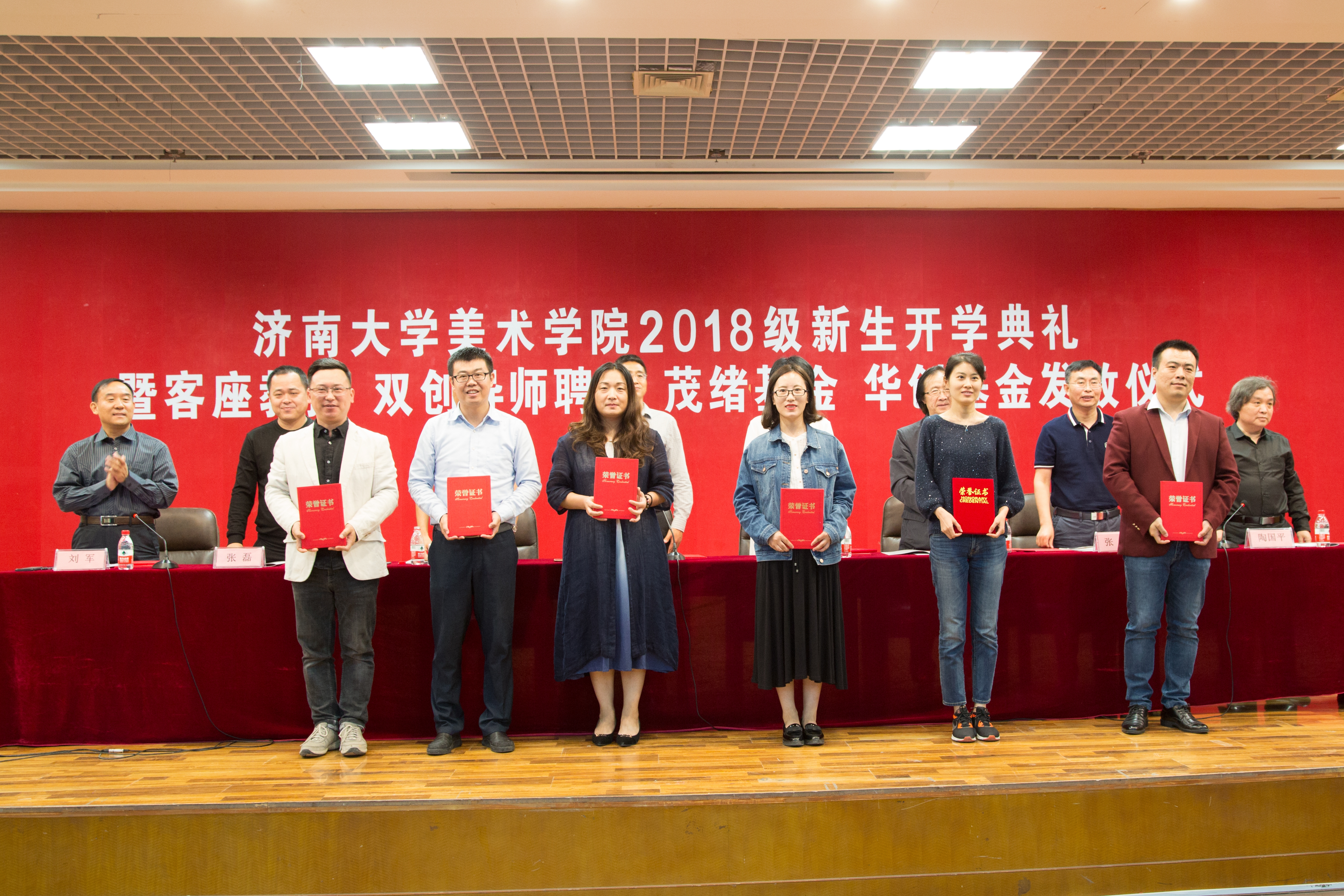 校团委书记孙菲菲、学生工作部副部长孙喜武、山东茂绪保温装饰工程有限公司董事长张捷、2001级优秀校友济南海右博纳品牌策划有限公司、山东东方华创文化产业有限公司总经理、创始人张磊、禁漫天堂
