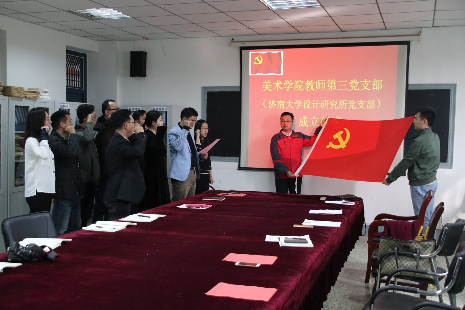 在教师第三党支部正式成立之后,支部全体党员面对党旗重温了入党誓词。