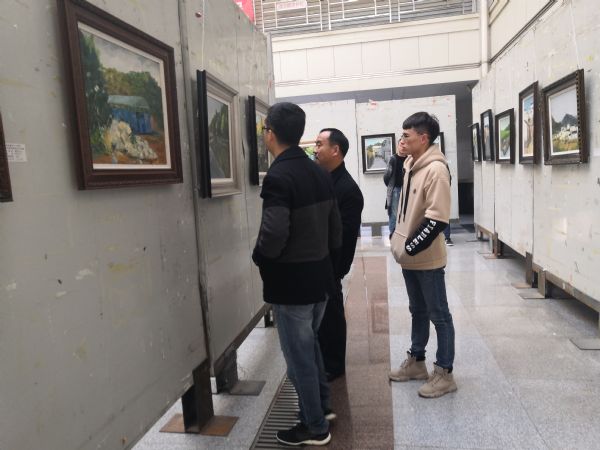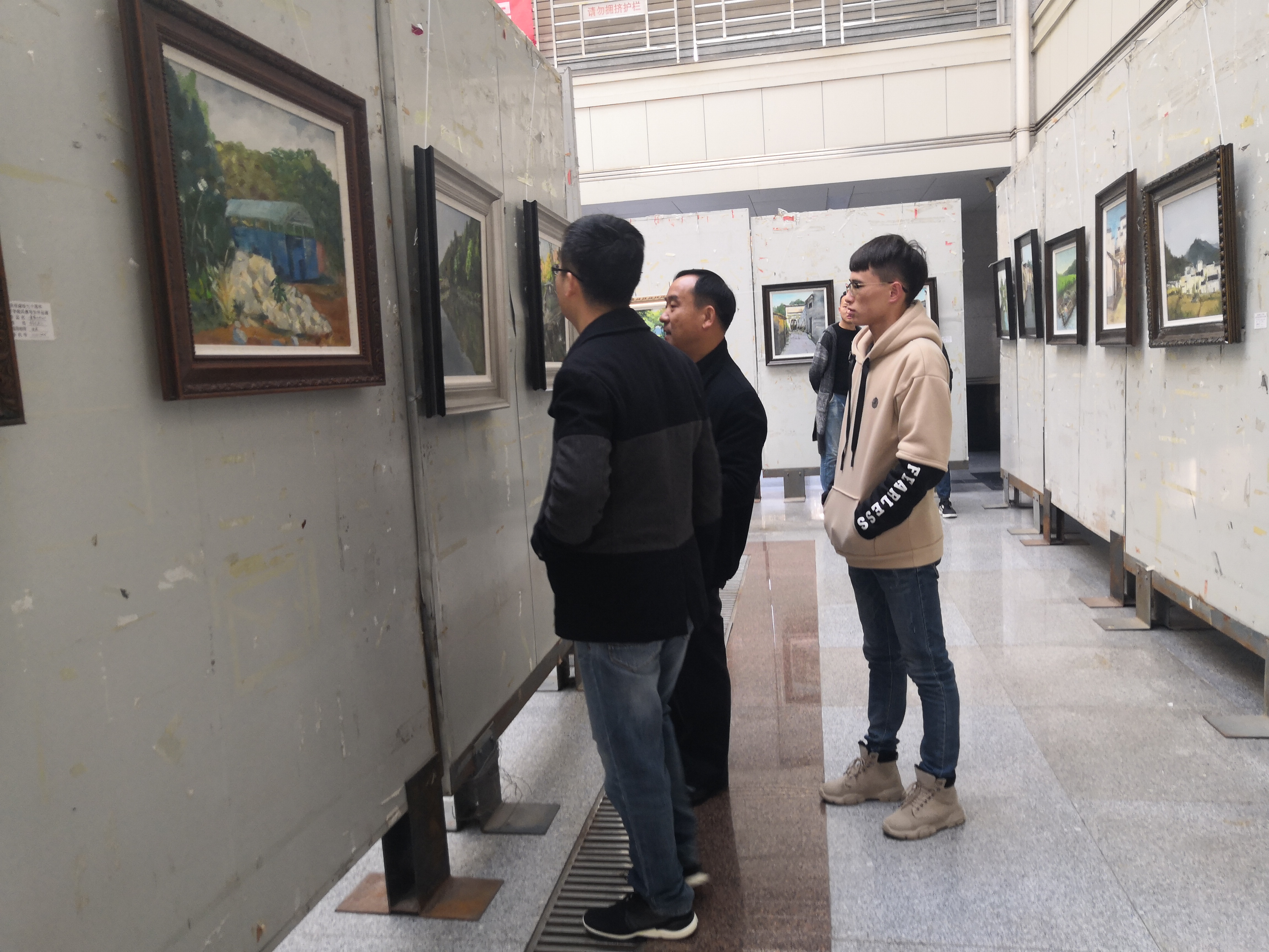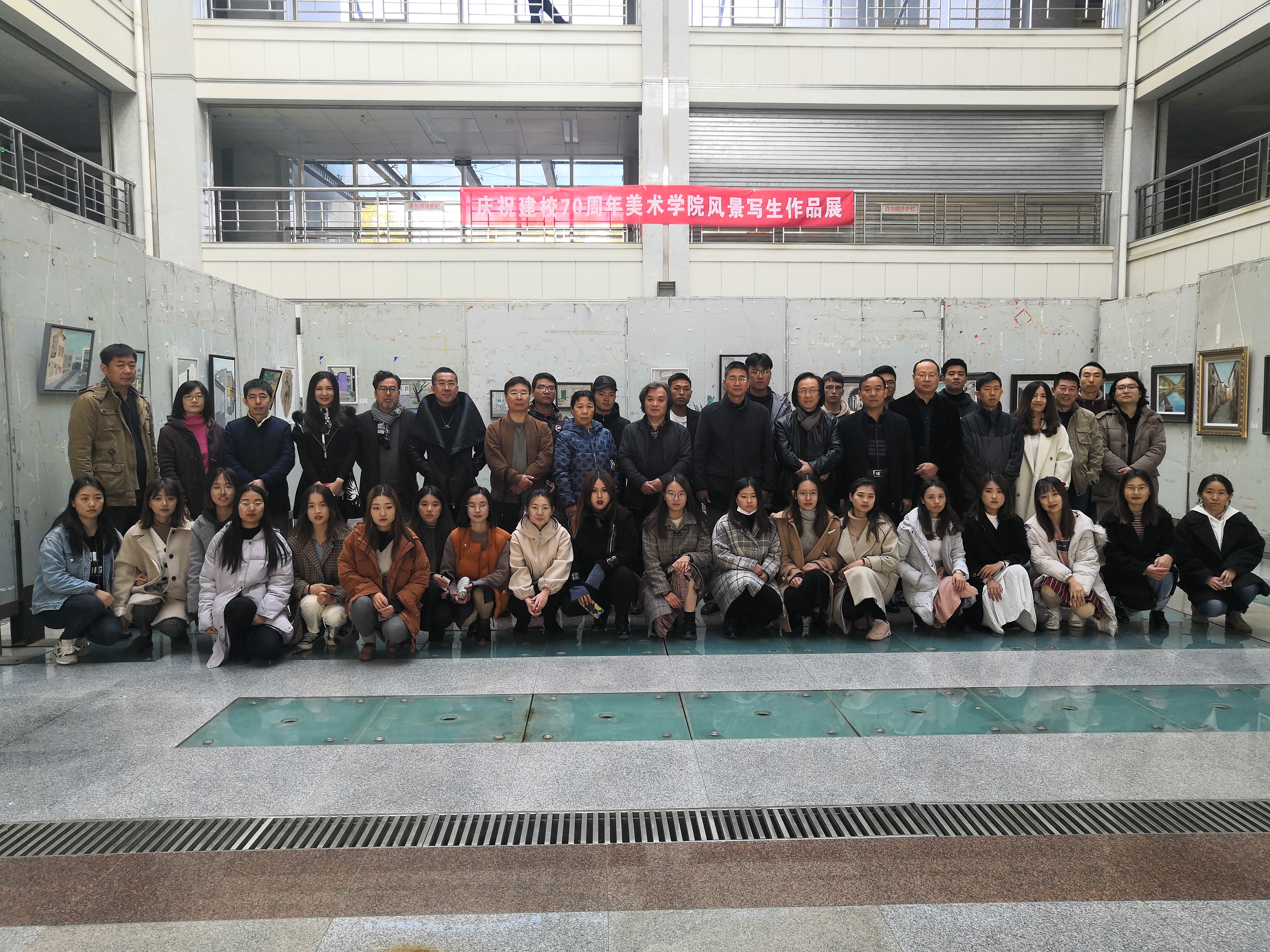 风景写生作品展开幕。随后教师和同学们一起合影并欣赏了展出作品。