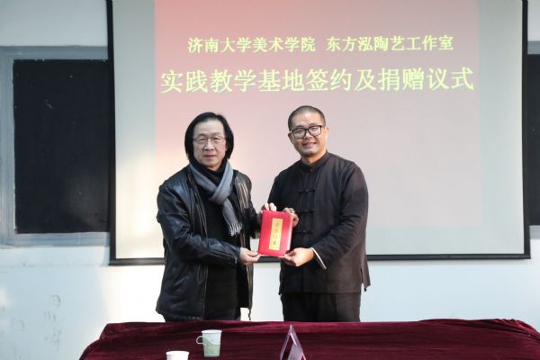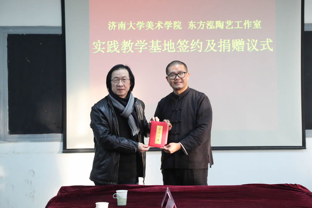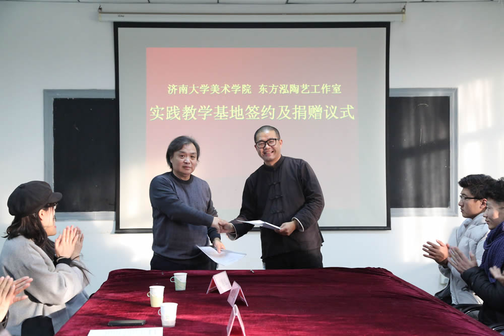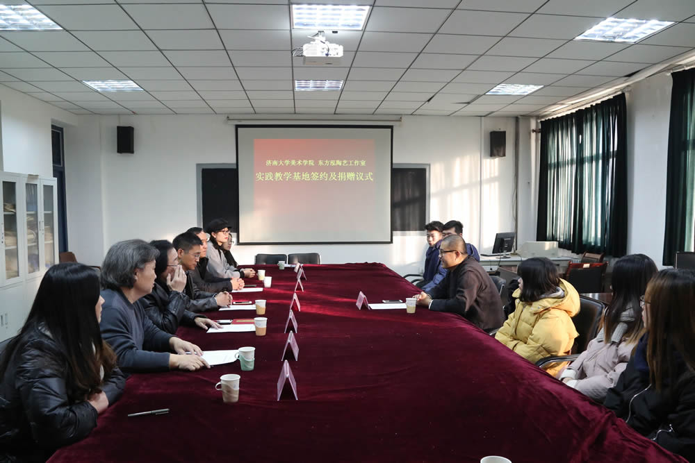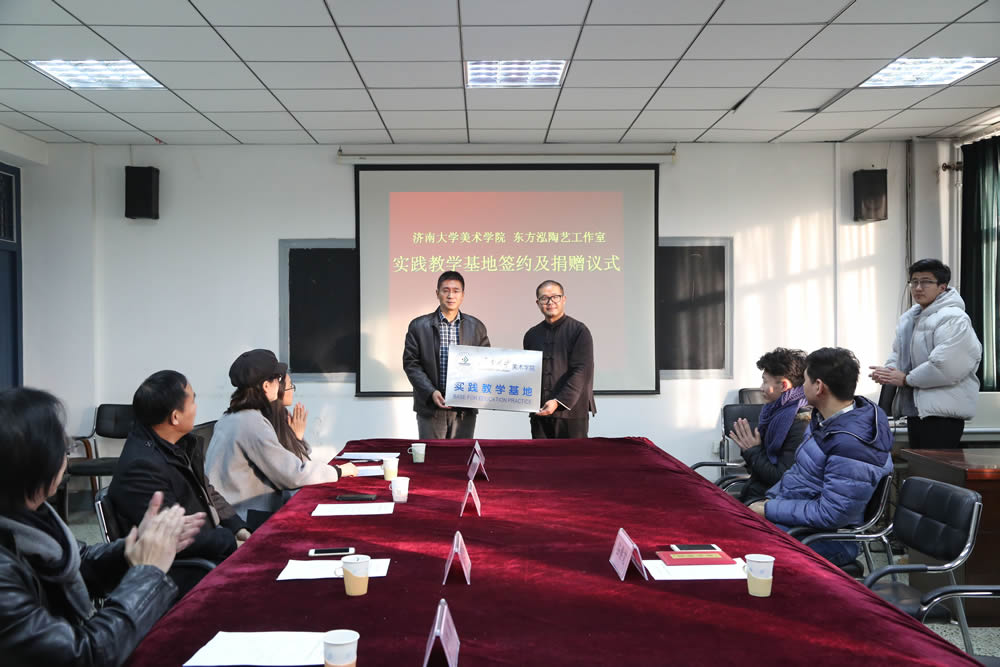 与东方泓陶艺工作室实践教学基地签约及捐赠仪式在四教美术系会议室召开。东方泓陶艺工作室谷善龙先生及夫人,禁漫天堂