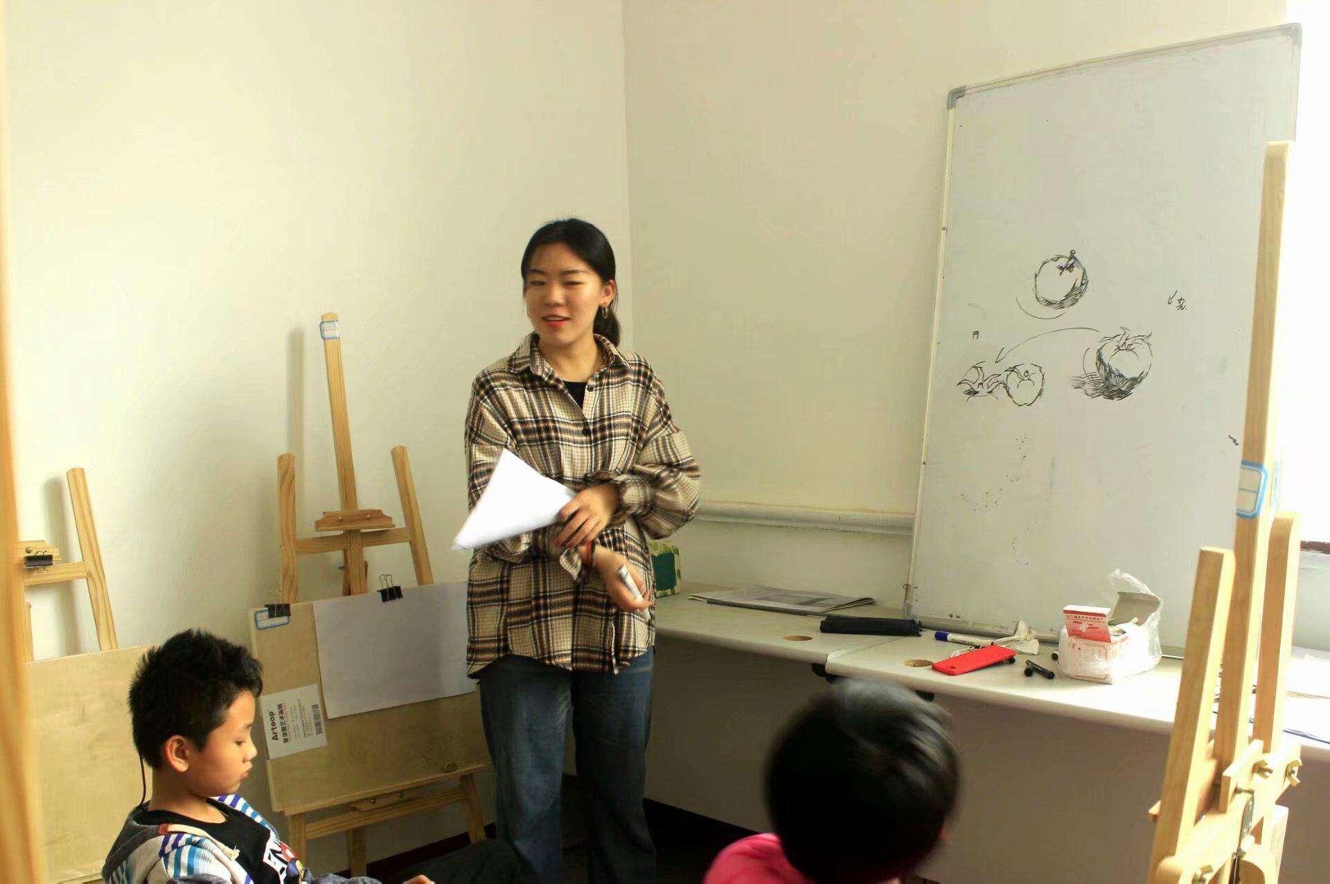 志愿者们2点准时到达兴福社区,面对志愿者的再次到来,孩子们都表现的非常开心。在进行简单的分工后,志愿者们便投入到了工作当中。活动开始,志愿者们在黑板上为孩子们进行了几何体组合示范与步骤讲解,在讲解后,按步骤带领孩子们绘出素描几何组合画,并针对孩子们的画进行点评和修改。在此期间,孩子们积极配合,并对志愿者们指出的错误进行修改,在志愿者的细心帮助下,原本一张张空白平淡无奇的纸在孩子们手中变成一幅了 干净立体的素描画。在学习之余,志愿者们还和孩子们分享身边的趣事,教里充满了孩子们和志愿者的欢声笑语。伴随着下课铃声的响起,志愿活动接近尾声。活动最后,志愿者们与孩子们合影留恋,圆满结了本次支教志愿服务活动。