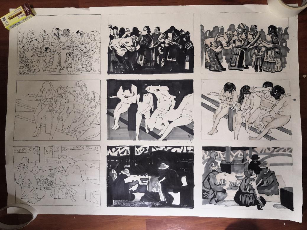 第一周教学:大群授课,三个小群分组讨论互动。让学生尝试分三个组,分别针对学生的大二以后选择的三个方向,国画、油画、综绘,分三组进行教学环节开展,目前是分组讨论学习环节,准备在本课程结束前一周尝试各专业的教学的办法引导方式进行,做好专业方向的适度衔接(课前与学生交流,大部分同学对下学期大二选专业方向迷茫,尝试分组学生自由,分组分类讨论分类学习,有侧重点引导)。