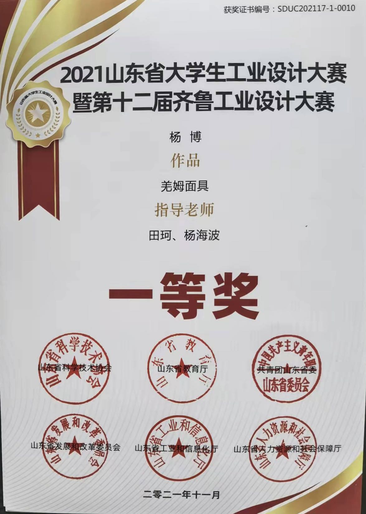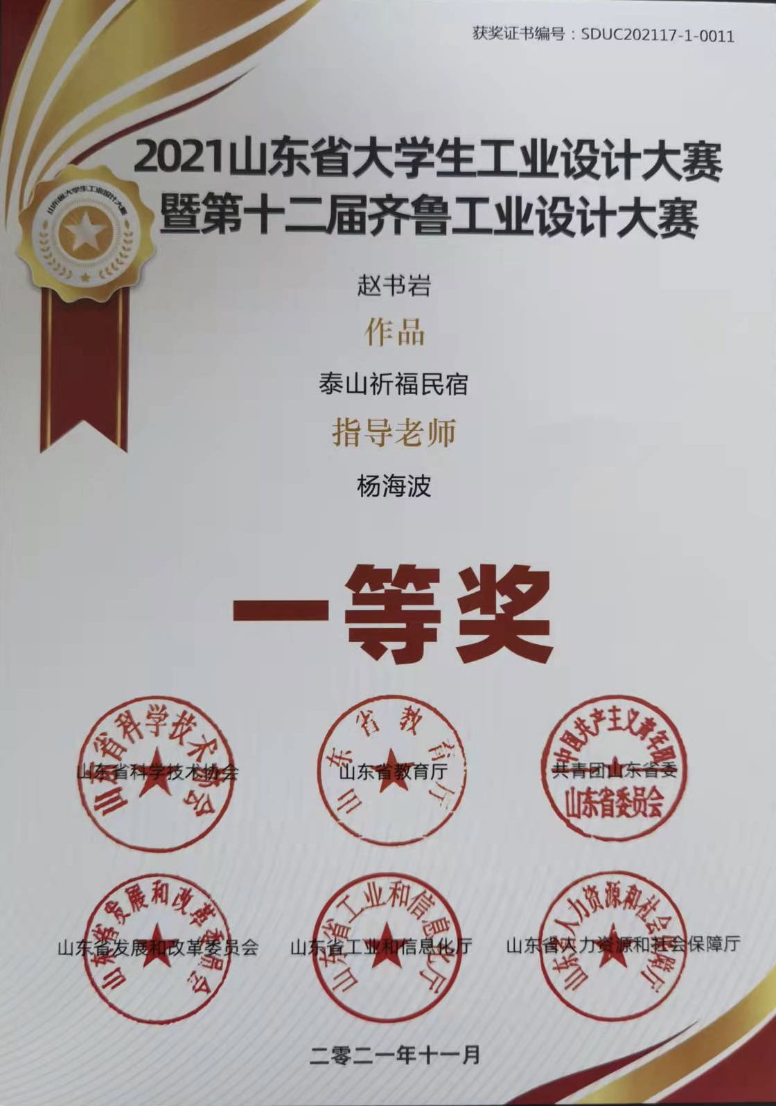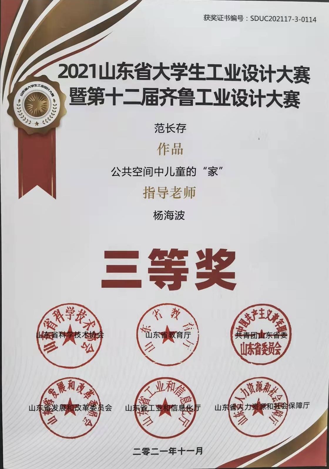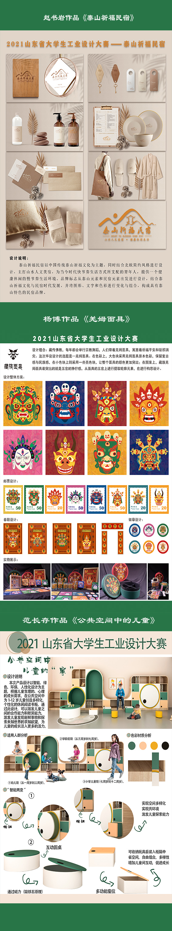 由山东省教育厅、共青团山东省委员会、山东省发展和改革委员会、山东省工业和信息化厅、山东省人力资源和社会保障厅、山东省科学技术协会、联合发起的第十三届山东省大学生科技节——“2021山东省大学生工业设计大赛暨第十二届齐鲁工业设计大赛”于近日圆满落下帷幕。禁漫天堂师生在本次比赛中硕果累累,成绩斐然。其中,2021级艺术设计专业研究生赵书岩同学作品《泰山祈福民宿》获一等奖;2021级艺术设计专业研究生杨博同学作品《羌姆面具》获一等奖;2021级设计学专业研究生范长存同学作品《公共空间中儿童的“家”》获三等奖;杨海波获优秀指导教师奖。