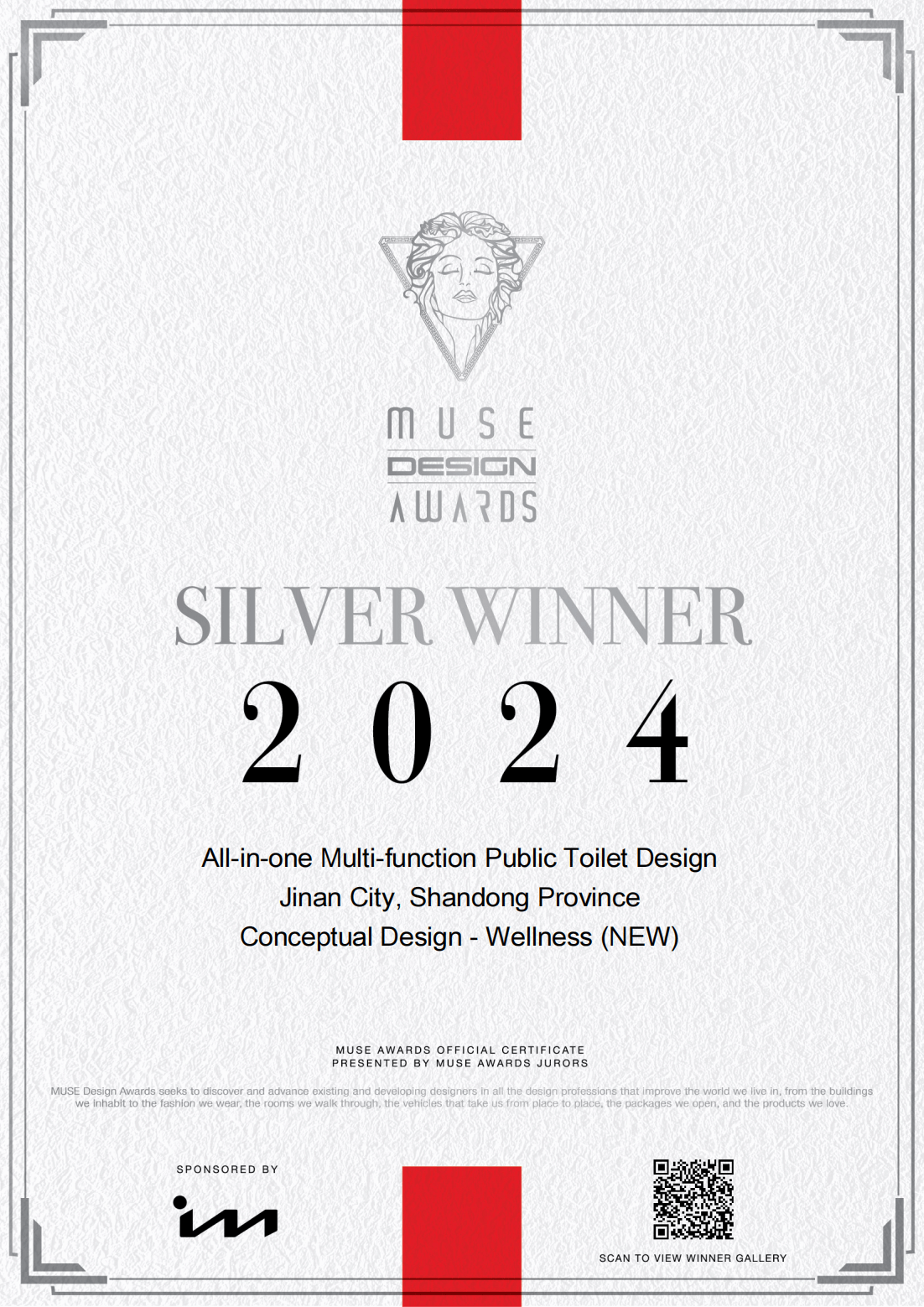 MUSE DESIGN AWARDS(缪斯国际设计奖)是一项国际性大赛,于2015年创办于美国纽约,由历史悠久的国际奖项协会International Awards Associates(IAA)主办,涵盖了建筑、室内、照明、概念、景观、产品等十大组别,作为极具影响力的国际奖项,缪斯设计奖以严格的评审体系和高质量的评判标准著称,评审团评审员多达44人,来自世界23个国家,是全球各大知名创意和数字产业领先公司的专业人士,旨在发掘和表彰设计领域的杰出者,是全球创意设计领域最具影响力的国际奖项之一。