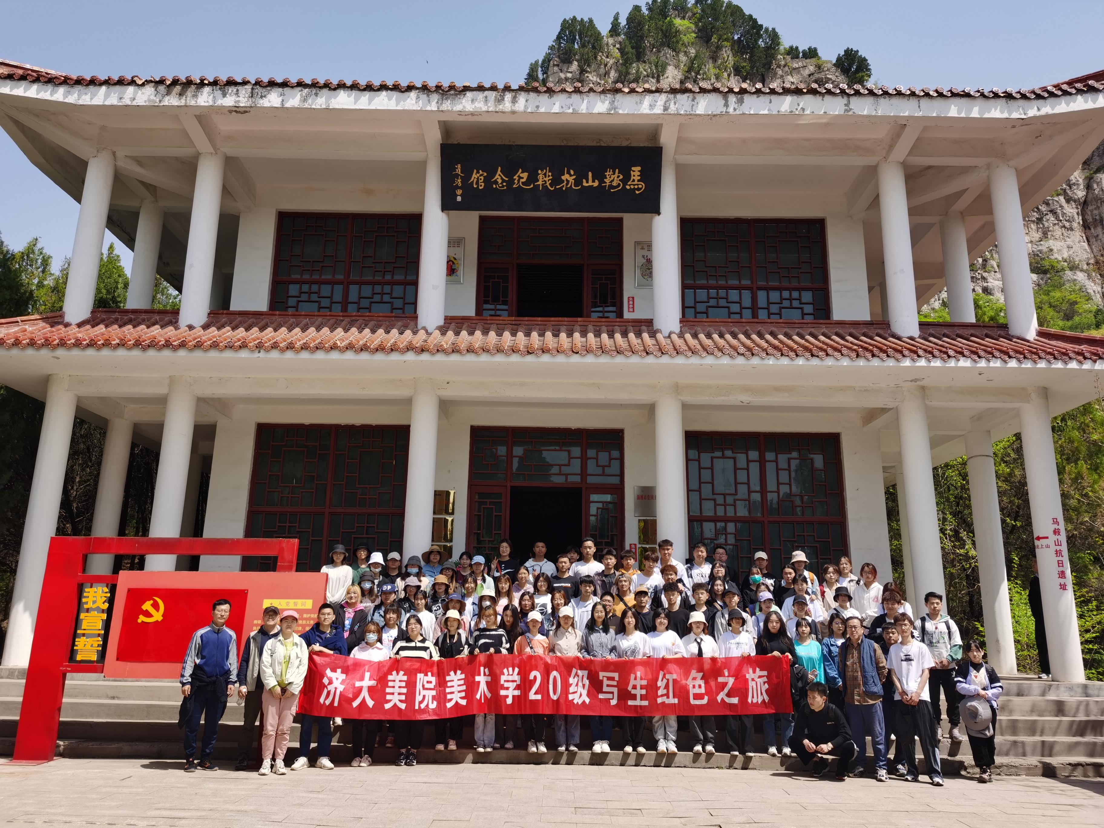教工第一党支部的林波老师、李甲老师、马立洪老师,利用在淄博峨庄带学生讲授写生课程期间,带领美术学2020级的89名学生,赴淄博市淄川区马鞍山抗日革命遗址开展了主题创作活动。