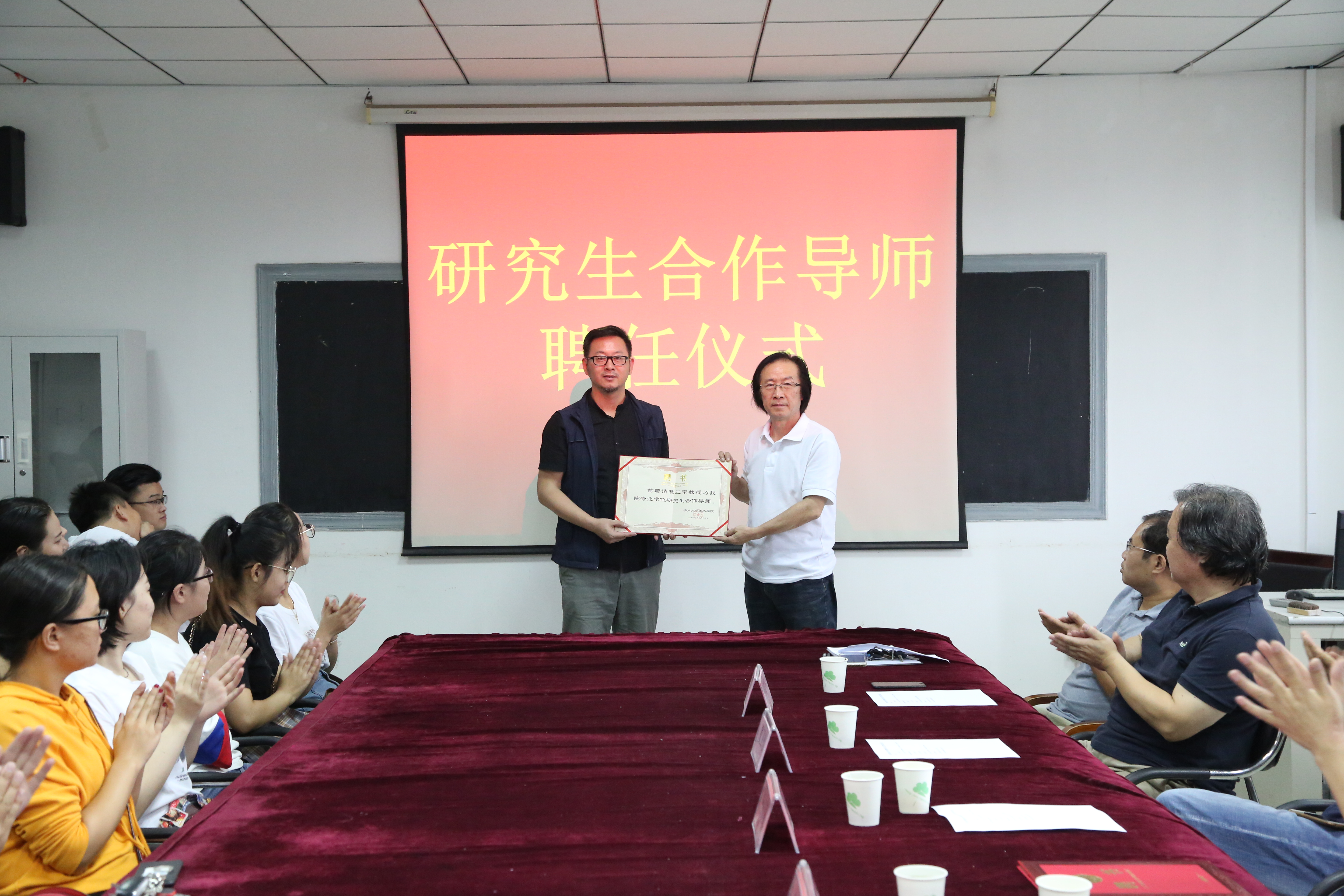 在美术系会议室举行合作导师聘任仪式及研究生交流会。来自山东女子禁漫天堂