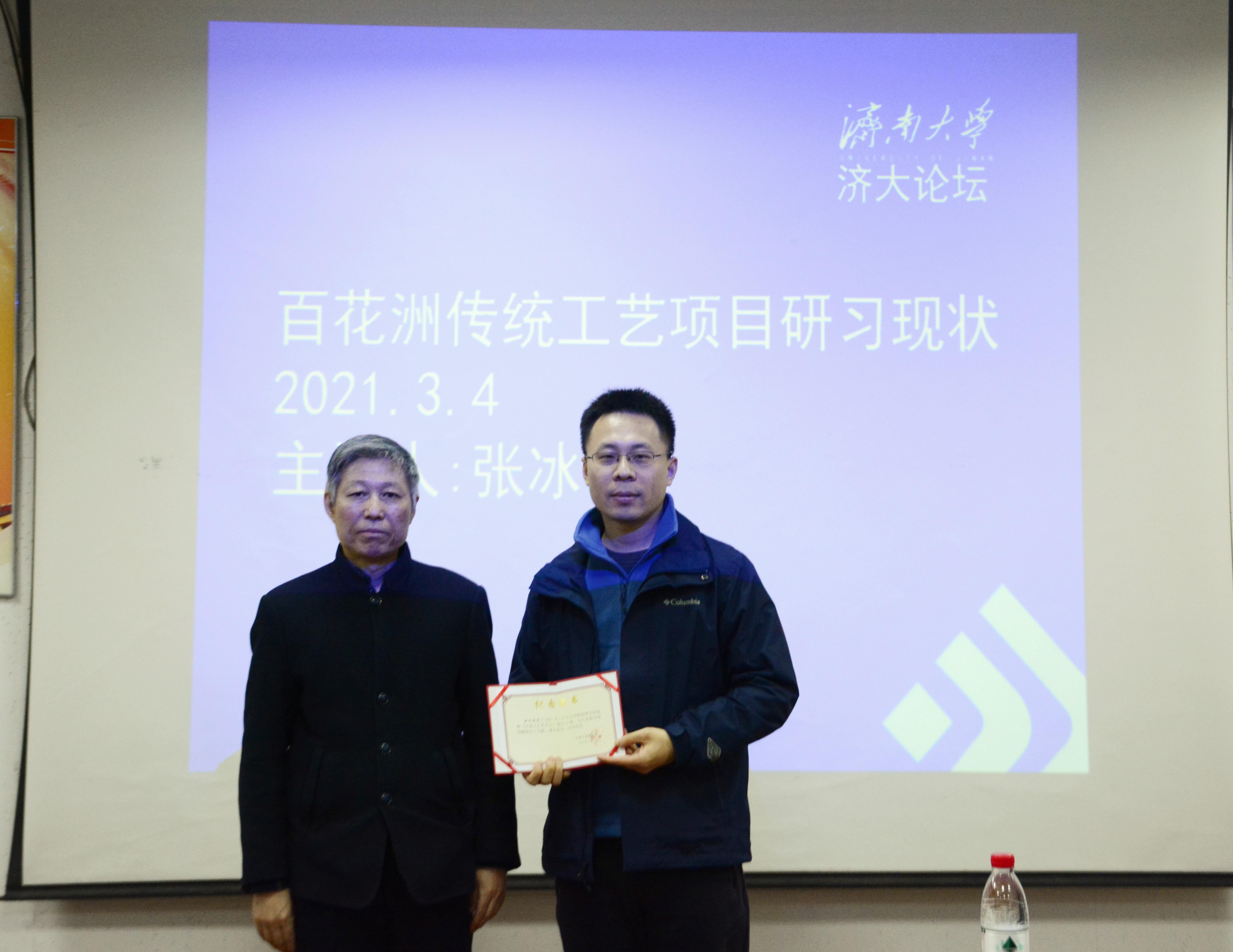 研究生作品集。在同学们热烈的欢迎后,张冰先生向同学们介绍了“济南百花洲传统工艺工作站”的非遗、手工艺项目保护发展现状。