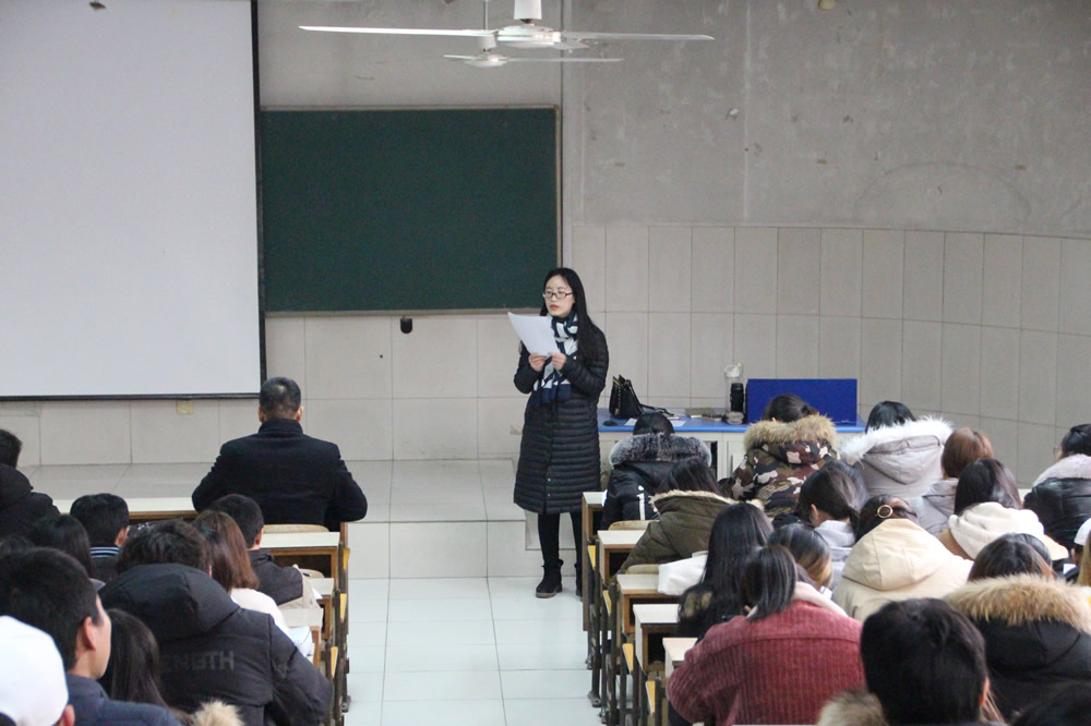 大会伊始,李健慧老师就16级在2017年取得的各项成绩,荣获的各项荣誉进行了表彰,希望同学们能够以优秀同学为榜样,努力向他们看齐。同时李老师也通报了同学们在一年中存在的问题,希望大家能够认真反省,努力改正。稍后,刘军书记希望同学们要反思自己行为,对自己负责,要选择正确的道路。最后强调安全问题,要选择安全交通工具,尤其是特殊天气。其次要注意网络安全,要高度警惕。最后祝福大家过一个圆满的春节。最后,夏卫东书记表示大家作为大二学生,四年已经过了一半,要利用剩下时间,再接再厉。随着2018年的到来,又是一个新的开始,要尽快为以后定一个计划。人生充满了很多偶然和必然,无数的偶然成为了必然,人生有不同的路口,不同的选择决定了不同的结果,有什么样的未来决定于有什么的计划。