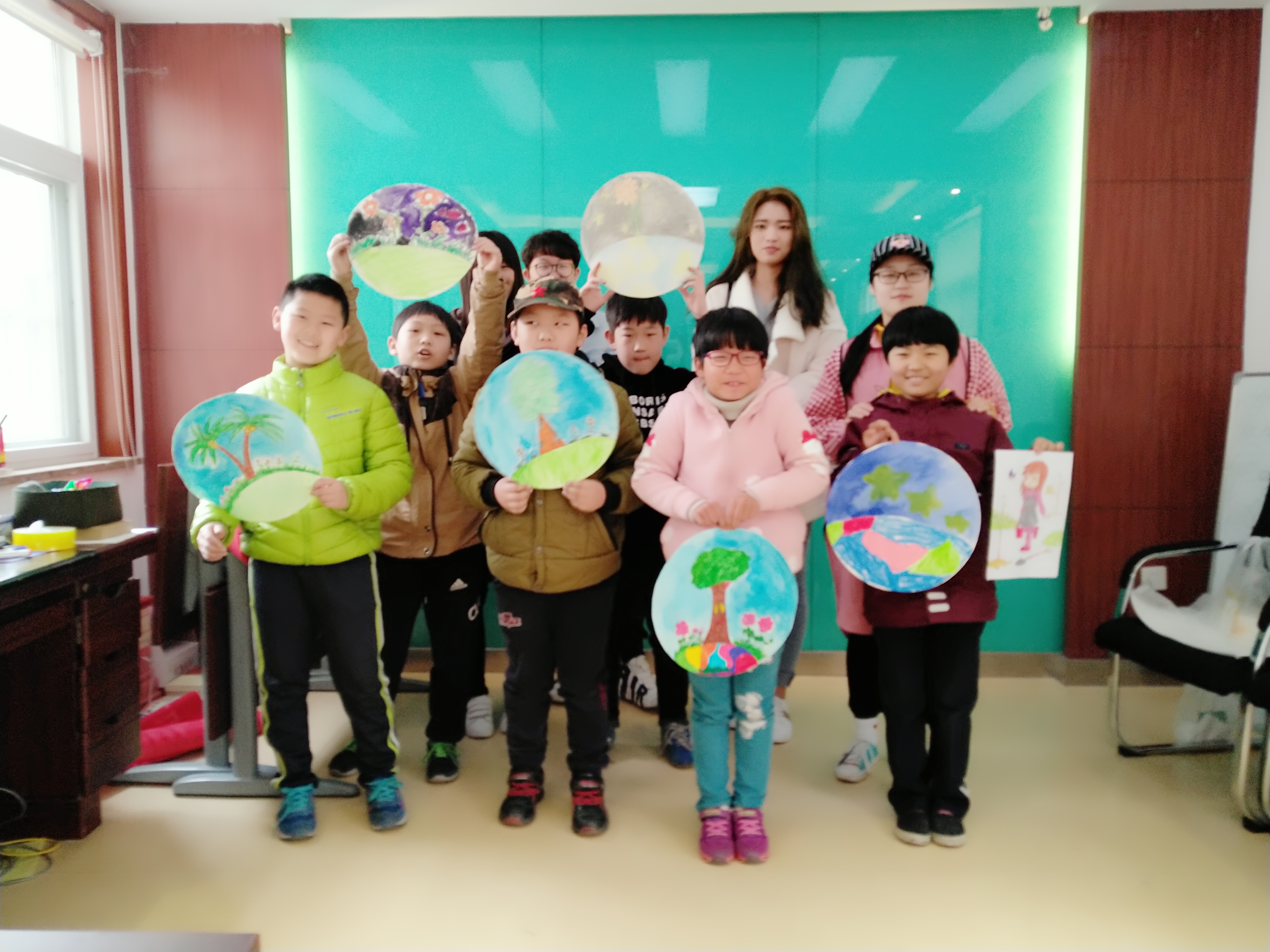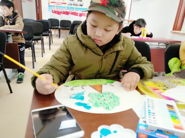 因这次支教临近植树节,为了让孩子们更好的理解植树节,我们把本次支教活动主题定为“纸上的绿”。在本次支教中,我们为孩子们准备了五十多张有关植物的简笔画,并带去圆形素描纸。在孩子们挑选了自己喜爱的简笔画后,以简笔画为参照物,教他们利用水彩笔、蜡笔以及水粉进行绘画。活动过程中,孩子们向我们讲述了他们的绘画思路和原因,以及一些学校里的有趣的事情。活动结束时他们都完成了各自的画作,形象的描绘出了绿的气息,体现了孩子们从小爱护树木、关心环境保护的真挚情感,他们用自己的双手描绘出“为环境增添一分绿”的环保理念。