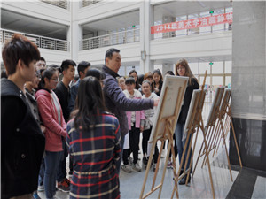 赵鹏老师便依次针对每幅作品的构图、笔法、色调等方面的优缺点进行了细心的讲解,同学们纷纷聚在一起,听着老师精妙绝伦的点评,从中获取更多的收获,取得更大的进步。现场展示的数十幅虽然风格各不相同,但是这些作品无不体现了作者的用心和对艺术的独特理解。活动现场氛围十分融洽,吸引了许多同学前来观看,他们专心的看着一个个精美的作品,相互交流讨论,深深的被艺术折服。