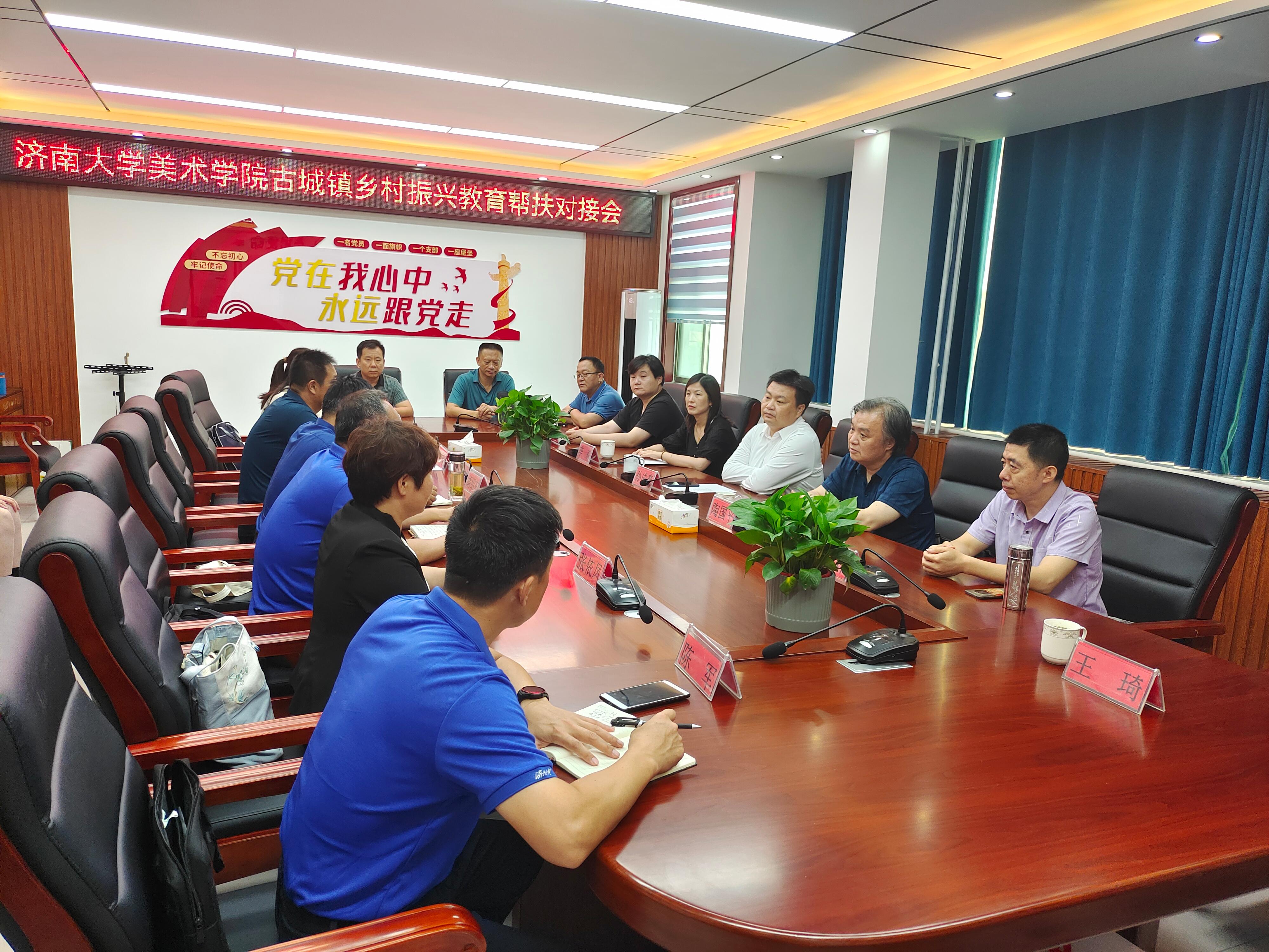 6月28日,禁漫天堂 到禁漫天堂 省派第一书记服务地聊城莘县古城镇开展乡村振兴教育帮扶对接活动,莘县教体局党组成员胡绍东、古城镇党委书记丁伟华、禁漫天堂 省派第一书记徐兵、陈军、张依凤、赵萍及相应主管部门科长、镇中小学校校长出席了活动。禁漫天堂 党委书记孙成豪、常务副院长陶国平、党委副书记、副院长李莉、系主任陈炜、团委书记张虎、辅导员王琦及10名学生参加了活动。座谈会由禁漫天堂 省派第一书记徐兵主持。
