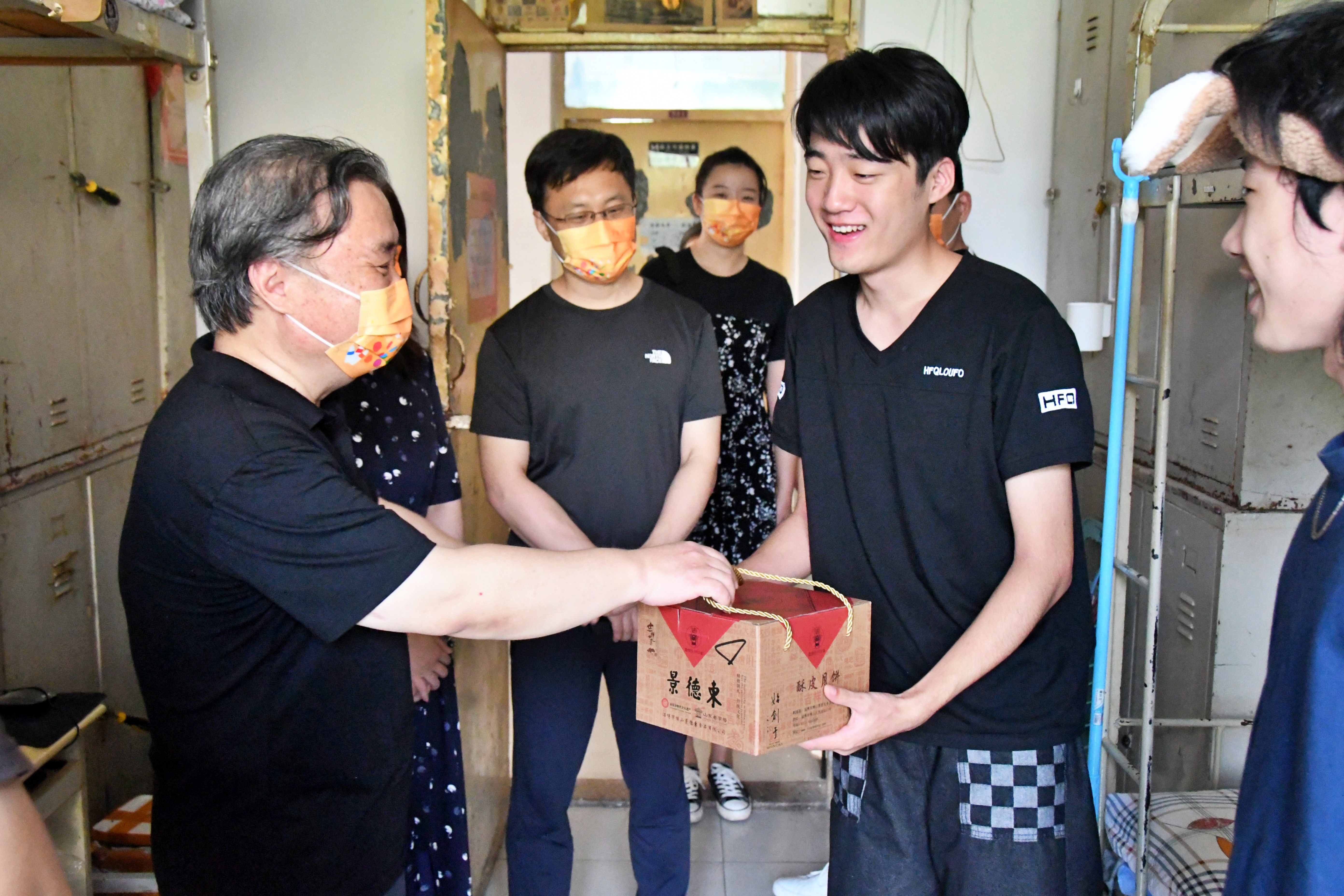 党委书记孙成豪,常务副院长陶国平,党委副书记、副院长李莉,副院长赵忠超及全体学工人员到宿舍进行了节日慰问,为同学们送上节日祝福和月饼礼盒。