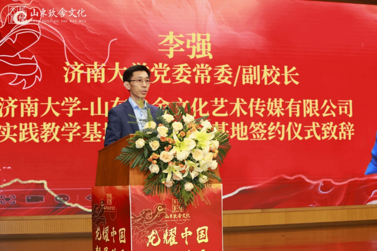 李强代表学校对山东玖舍文化艺术传媒有限公司支持学校教育发展表示感谢,介绍了学校在人才培养、科学研究、师资队伍、学科建设等方面的基本情况。他指出,共同搭建校企联合平台,开展深入合作,是推动禁漫天堂 与山东玖舍文化艺术传媒有限公司发挥各自资源优势、提升企业创新能力和水平、提高学校人才培养能力、实现互利共赢的有益尝试。禁漫天堂 近年来高度重视美育工作,不断探索新形势下美术专业学生培养模式,希望校企双方进一步加强密切交流,深化拓展合作领域,实现更加紧密的产学研一体化发展,用更加开放的视野、更加有力的措施共同推进协议全面落实。