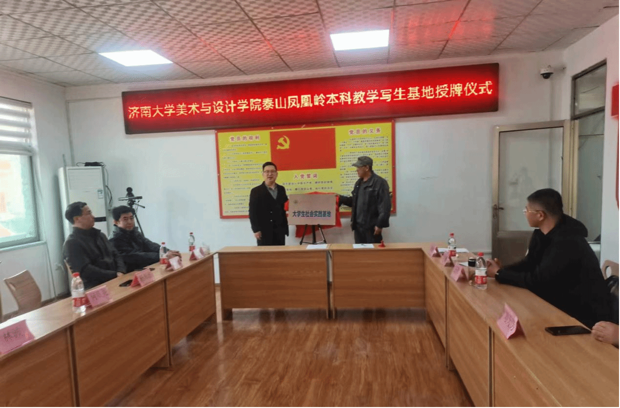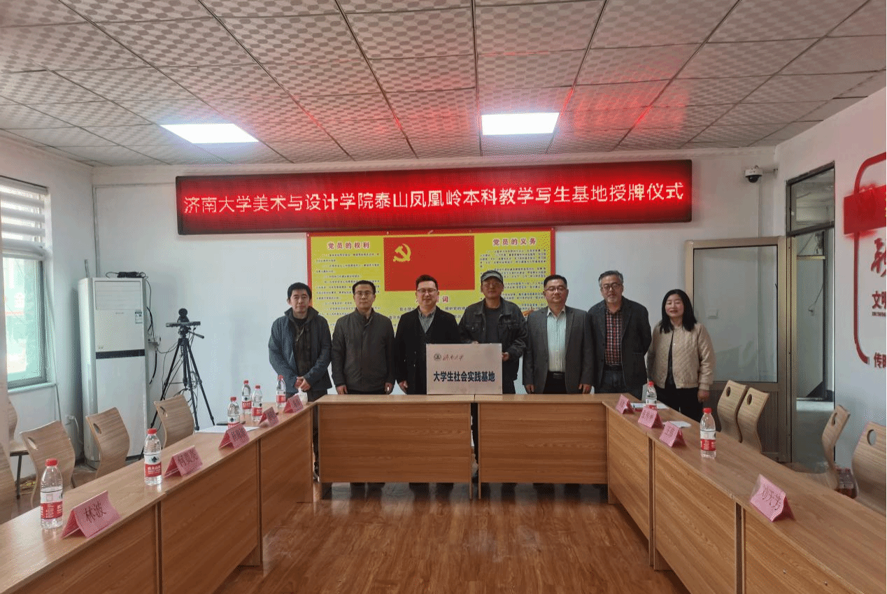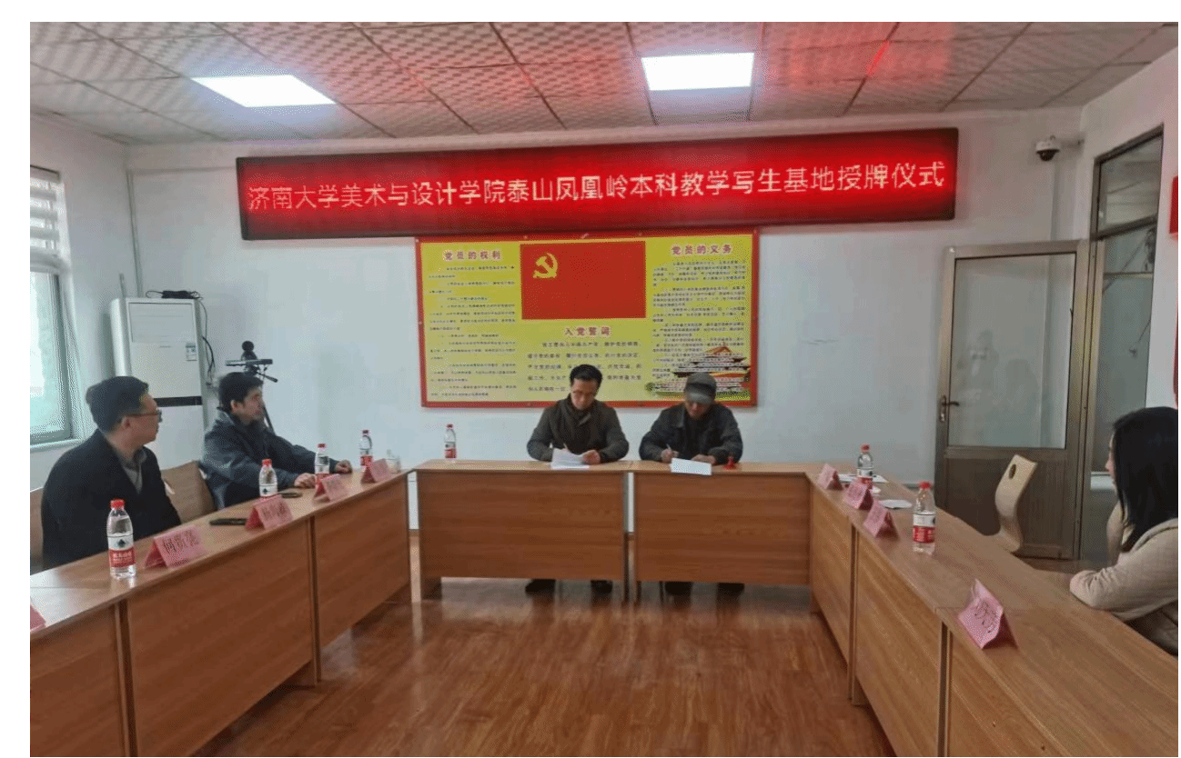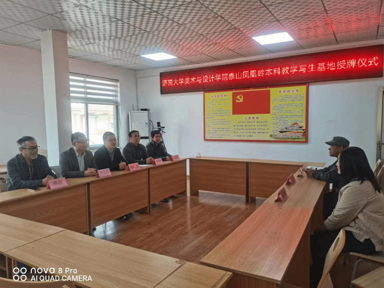 副院长杨海波、党委副书记、副院长何贵亮、院长助理桑曙光、美术系主任陈炜、油画教研室主任林波、长清区万德镇八号路管理区书记王伟、万德凤凰岭写生创作基地校长张传彬、经理刘天芳、马场村村委委员宋敏共同出席签约挂牌仪式。